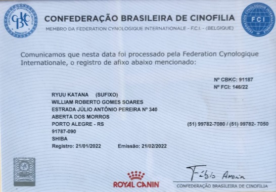 Canil especializado em Shiba, filiado à NIPPO, sociedade de preservação dos cães japoneses
